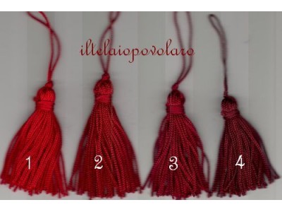 Nappina in tripolino rosso cupo come il moulinè 815 DMC. Un accessorio da applicare su mille più uno, articoli: segnalibri - chiavi - bordi - cuscinetti..... nella foto la numero 3.L'articolo è artigianale per cui la lunghezza della nappina può variare...
