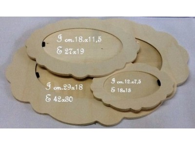 In maleriale legnoso - naturale. Nella foto è a confronto con le misure disponibili - interne ed esterne - specificate all'interno della cornice stessa