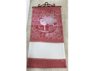 Pannello natalizio, già rifinito, in cotone jacquard con babbo natale e fascia in tela aida 5,5 pti/cm da ricamare a punto croce.